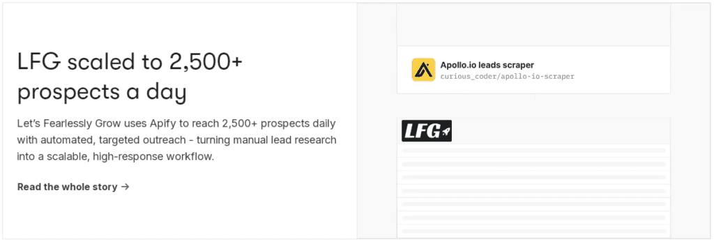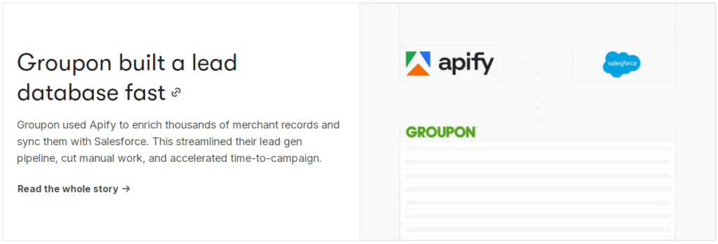 Prospecting doesn’t have to be done by hand. Let Apify amplify your lead generation and free up your team to focus on closing.
